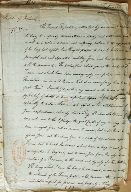 But it was Theobald Wolfe Tone who embarked on Hoche’s hapless expedition to Bantry Bay in December 1796. Wolfe Tone had arrived in Paris incognito in February of that year. After the failure at Bantry Bay, Wolfe Tone went back to Paris and campaigned with the French in the Army of the Rhine and in Holland before embarking in Brest on the ship that would bring him to Lough Swilly, and his death, in November 1798. But his family stayed on in Paris until 1816, with his son, William, winning the Légion d’Honneur for bravery fighting in Napoleon’s army.